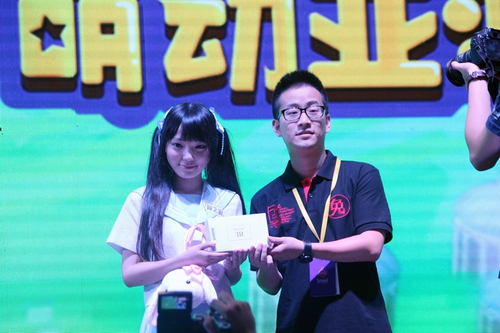 蜗牛市场总监为《仙之痕》卖萌大赛冠军得主咬人猫颁奖
